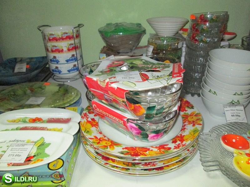 А также разнообразную кухонную утварь, начиная от самого необходимого - наборов кастрюль, сковородок, столовых приборов и заканчивая наборами для различных напитков.
