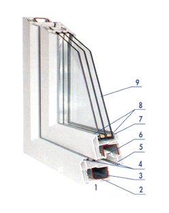 ТеплоТепло в доме сохраняется благодаря 3 - камерному строению профиля (3), толщине профиля 60 мм (1) и возможности установки стеклопакета (9) толщиной до 38 мм. Уплотнение (4,8) устанавливается автоматически в профиль при его производстве, без участия человека. Такая технология обеспечивает плотный притвор элементов окна по всему периметру, что полностью исключает появление сквозняков в окне. |
